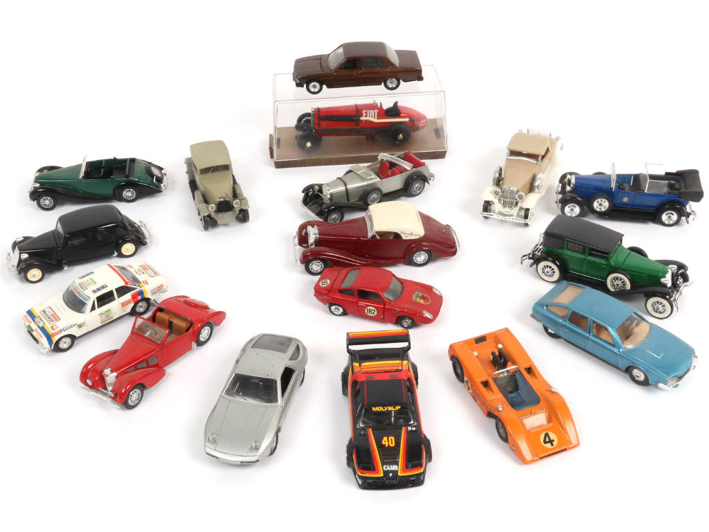 miniatures reproduisant notamment les modèles : PEUGEOT, CITROËN & FIAT - on y joint une FIAT de la marque BRUMM (boîte état 'b') - avec manques & parties cassées suivant les exemplaires