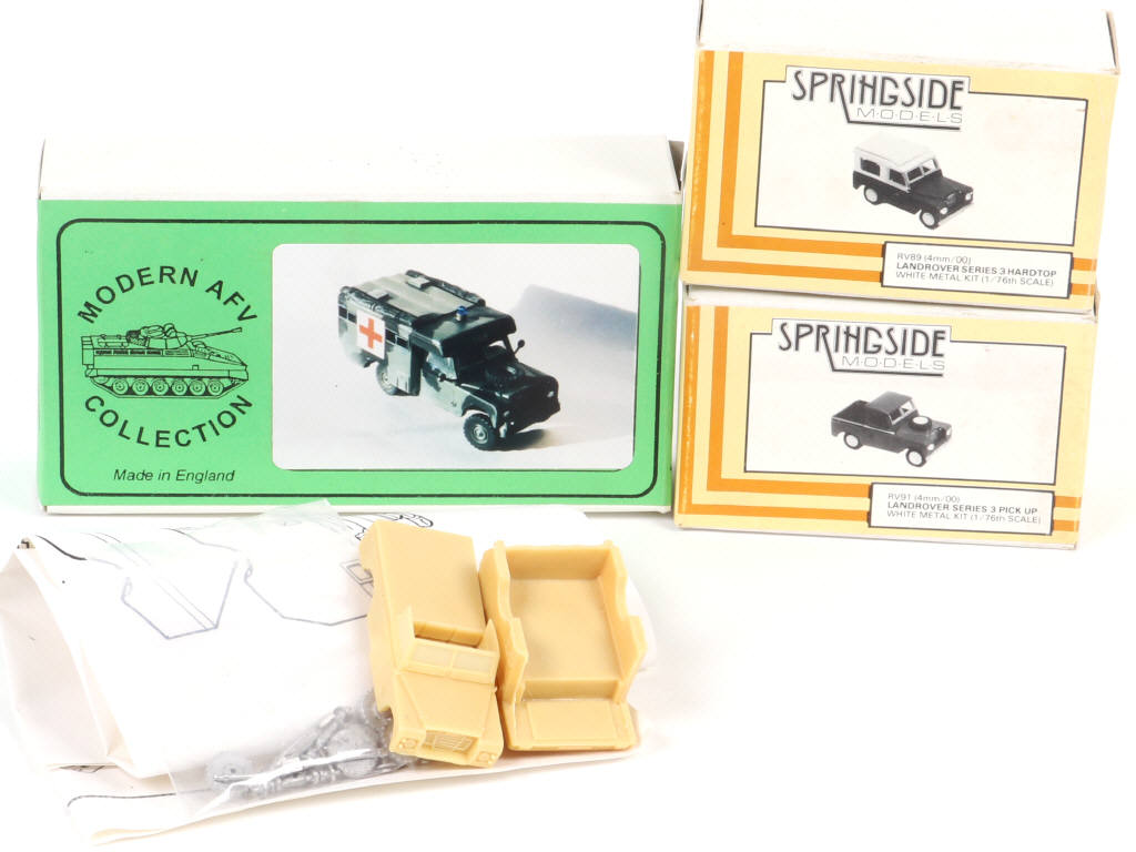 semblent complets (2 exemplaires jamais ouverts) - comprend les marques : MODERNA AFV & SPRINGSIDE MODELS - certaines boîtes avec légers accrocs par endroits
