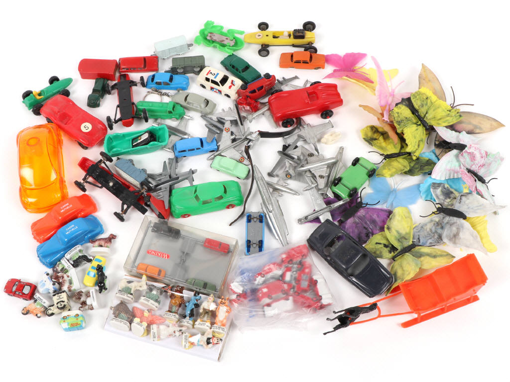 comprend notamment : avions & voitures BONUX, CADUM PAX, coffret WIKING, séries de fèves (dont SYLVAIN ET SYLVETTE) & papillons - possibilité de petits manques & parties cassées