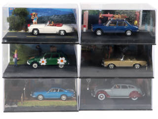 issu de la collection 'LA ROUTE BLEUE' - on y retrouve notamment les marques : PEUGEOT, CITROËN & SIMCA - sous boîtes-vitrines (certaines légèrement encrassées & rayées par endroits - états 'a' & 'b')
