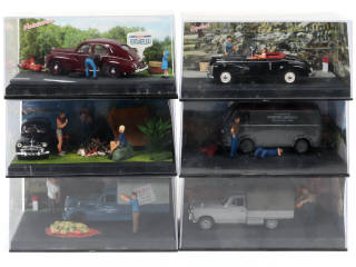 issu de la collection 'LA ROUTE BLEUE' - on y retrouve les marques : PEUGEOT & RENAULT - une figurine désolidarisée du socle - sous boîtes-vitrines (certaines légèrement encrassées par endroits - états 'a' & 'b')
