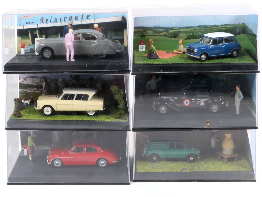 issu de la collection 'LA ROUTE BLEUE' - on y retrouve notamment les marques : JAGUAR, AUSIN & CITROËN - sous boîtes-vitrines (certaines légèrement encrassées & rayées par endroits - états 'a' & 'b')