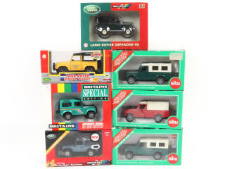 on y retrouve notamment les marques : BRITAINS, SIKU & NEW RAY - longueur du plus grand exemplaire 14 cm - certaines boîtes légèrement déformées & avec accrocs par endroits (états 'a' & 'b')