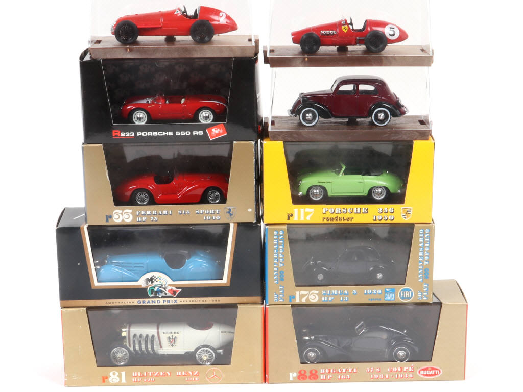 on y retrouve notamment les marques : BUGATTI, FERRARI & PORSCHE - certaines boîtes avec légers accrocs par endroits (états 'a' & 'b', certains suremballages manquants)