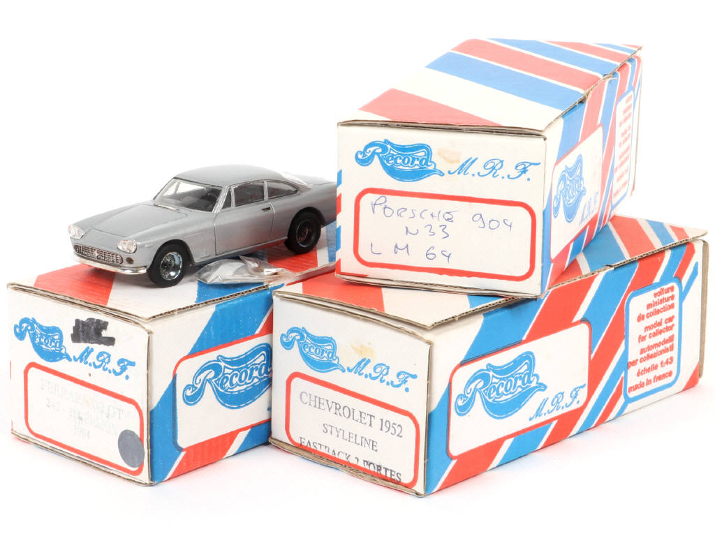 semblent complets - miniatures reproduisant les modèles : PORSCHE & CHEVROLET - on y joint une FERRARI 330 GT de la marque (avec sachet d'accessoires)