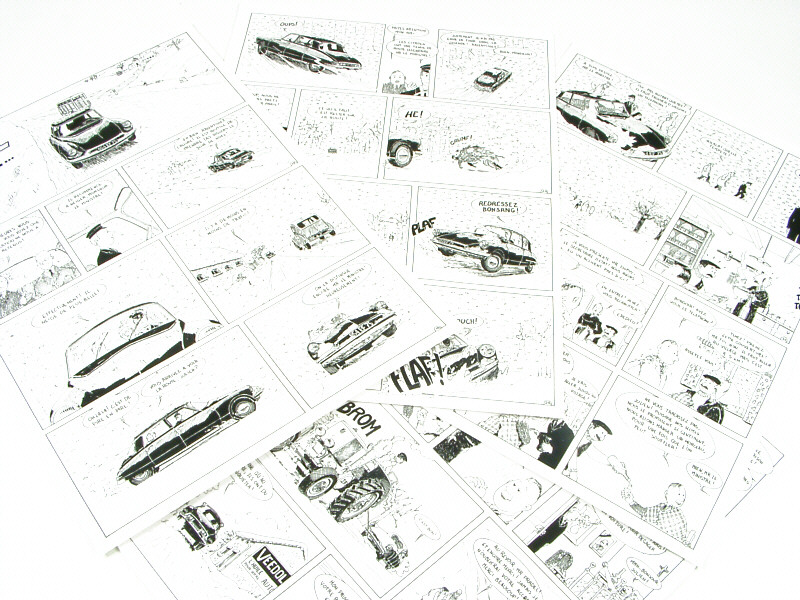 cette histoire a été publiée dans l'Argus de la Miniature - dimensions de chaque planche : 41 x 29,5 cm - mettant en scène une CITROËN DS & un tracteur agricole VIERZON