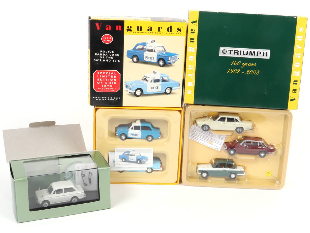 miniatures reproduisant notamment les modèles : TRIUMPH & HILMAN - 2 coffrets avec certificats d'éditions limitées numérotées - certaines boîtes avec légers accrocs & déformées par endroits (états 'a' & 'b')