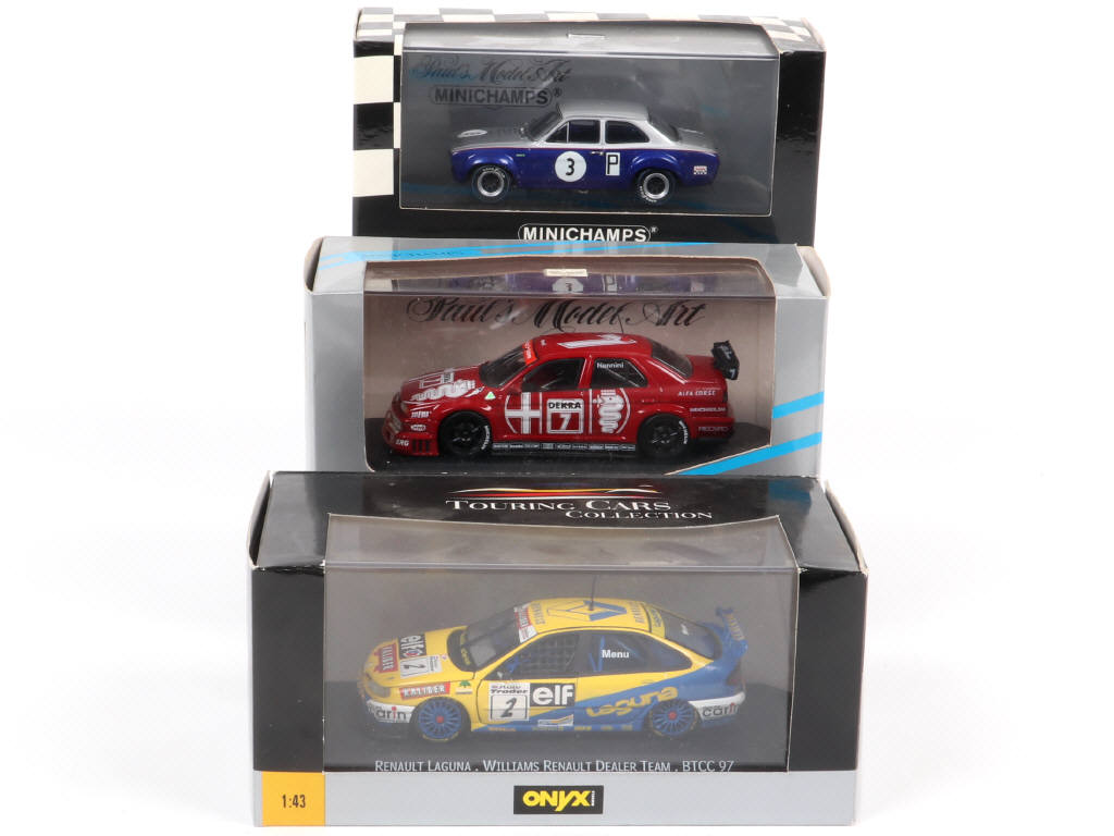 miniatures reproduisant les modèles : FORD ESCORT & ALFA ROMEO - on y joint une RENAULT LAGUNA de marque ONYX