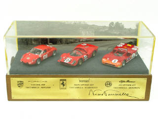 contient : une PORSCHE 718/8 RSK de 1962, une FERRARI 330 P4 spyder de 1967 & une ALFA ROMEO 33/3 spyder de 1971 - série limitée numérotée 22/50 exemplaires avec autographe du pilote - SUPERBE !