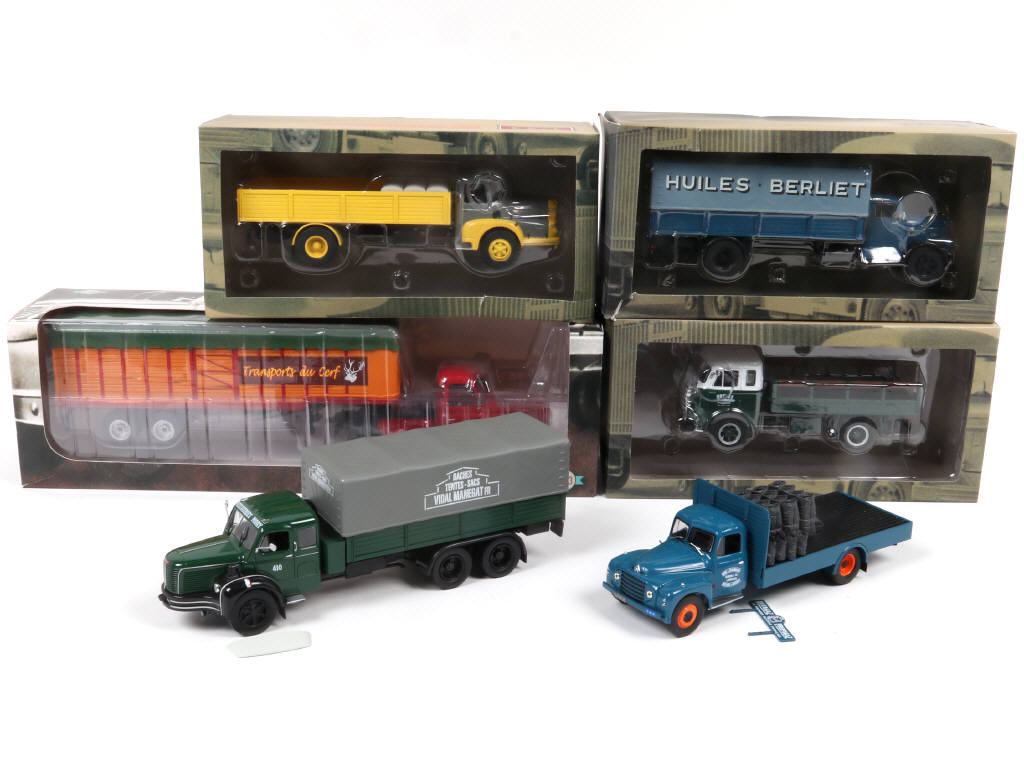 collection 'CAMIONS D'AUTREFOIS' (éditions ALTAYA) - avec petits manques & parties cassées - états des boîtes 'a' & 'b' (certaines légèrement déformées avec accrocs par endroits)