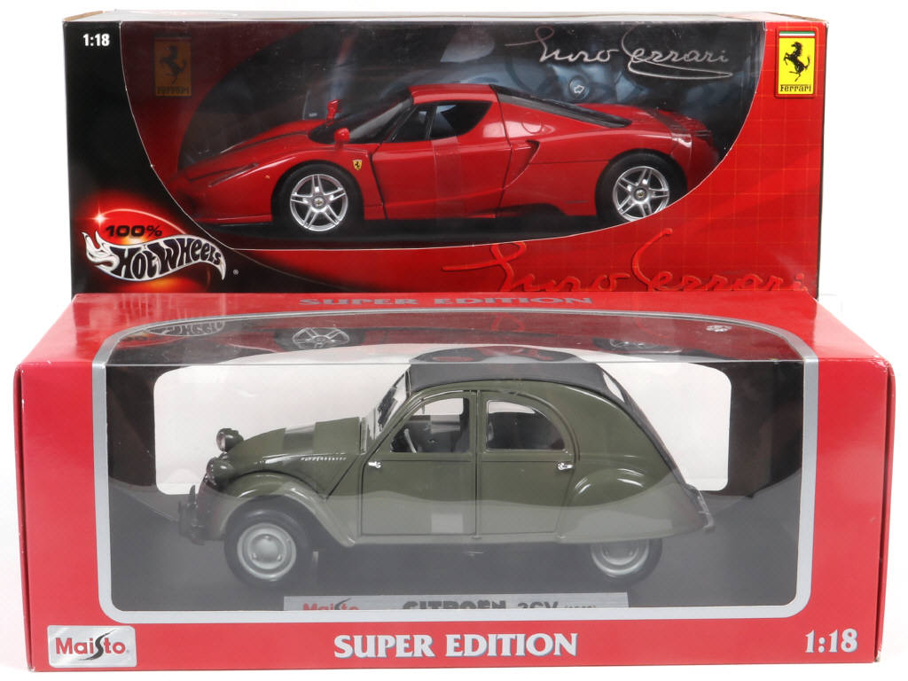 échelles 1/18ème - on y retrouve les marques : MATTEL & MAISTO (jamais déballé) - boîtes avec légers accrocs par endroits (états 'a' & 'b')