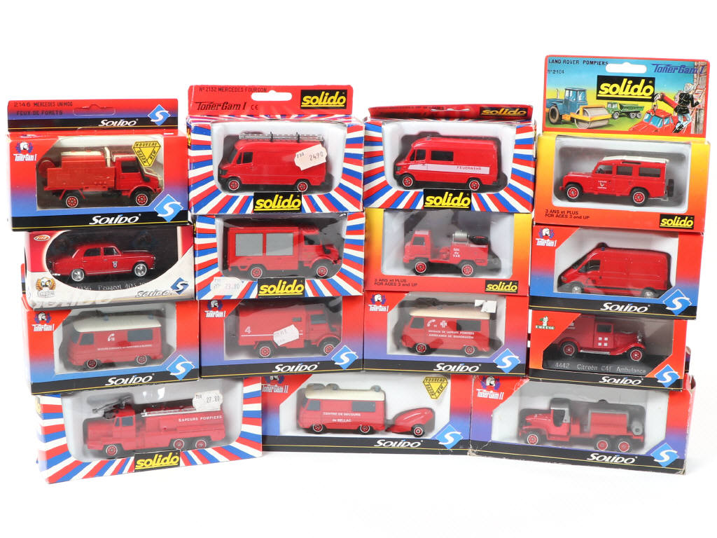 SOLIDO (FRANCE) Ensemble de 15 véhicules de pompiers