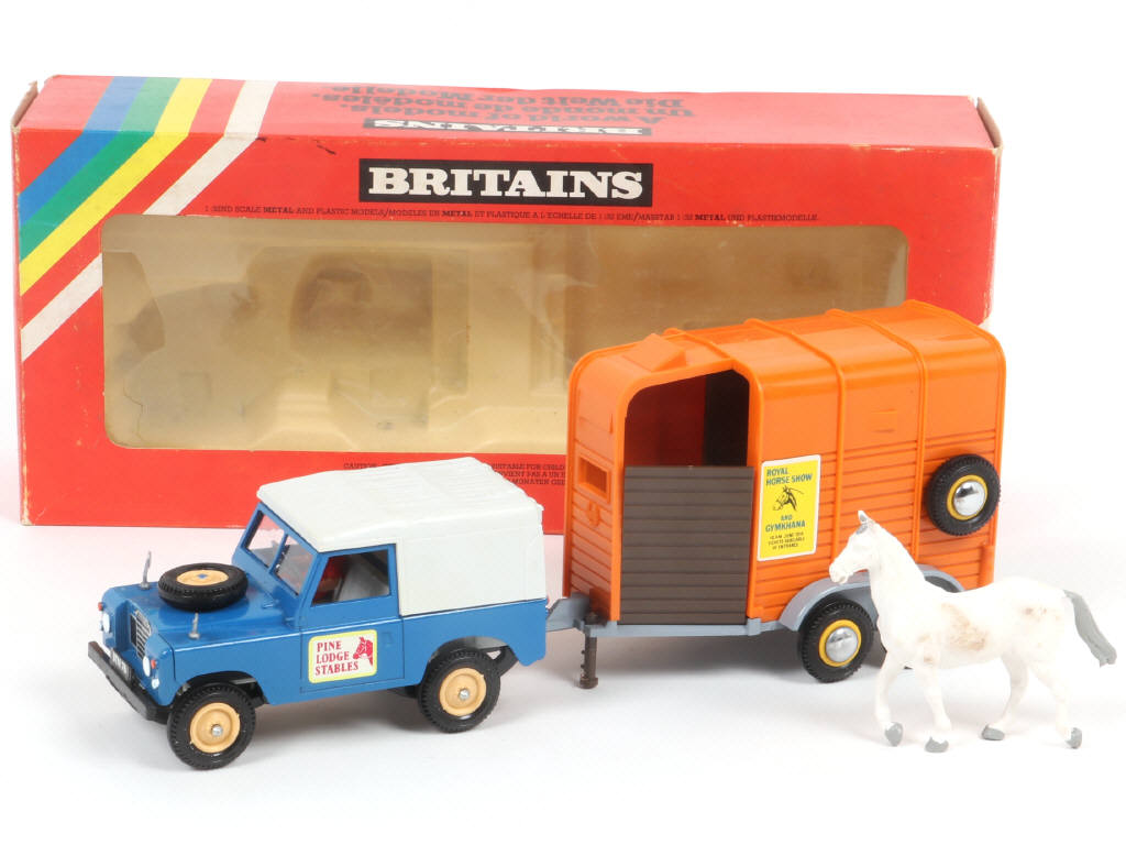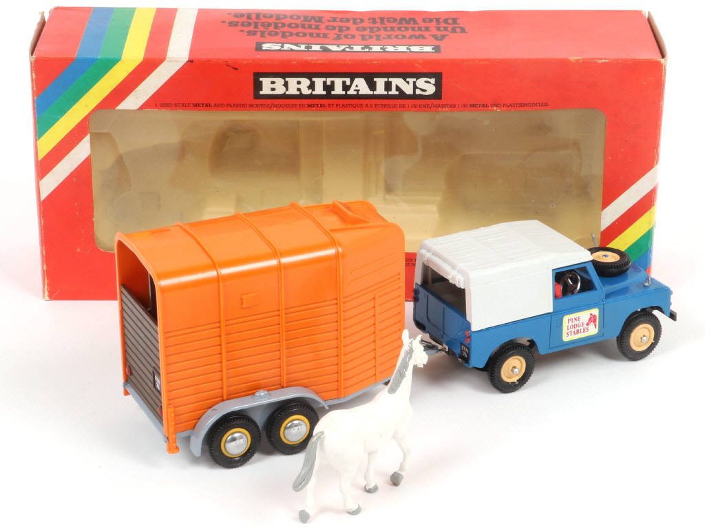 BRITAINS (GB) 9593 LAND ROVER avec van à chevaux vert, marron, orange & gris