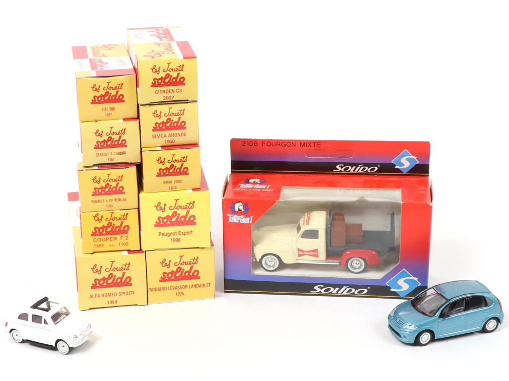 on y retrouve la collection 'LES JOUETS SOLIDO' - quelques accrocs plus ou moins importants sur les boîtes - on y joint un FOURGON MIXTE 2106