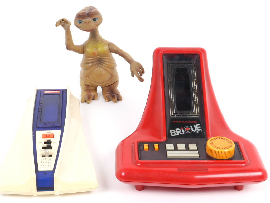 on y retrouve les marques BANDAI & BAMBINO (testés fonctionnent) - ensemble encrassé & rayé par endroits - on y joint une figurine E.T (avec manques & parties cassées)