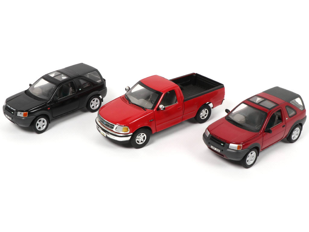 échelle 1/18ème - on y retrouve les modèles : LANDE ROVER FREELANDER & FORD F150 - modèles légèrement encrassés - sièges passagers cassés sur l'un des modèles