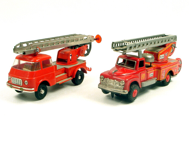 longueur 27 cm - moteur à piles (à revoir) - en action, le camion avance en contournant les obstacles, l'échelle monte & descend tandis que la cloche sonne