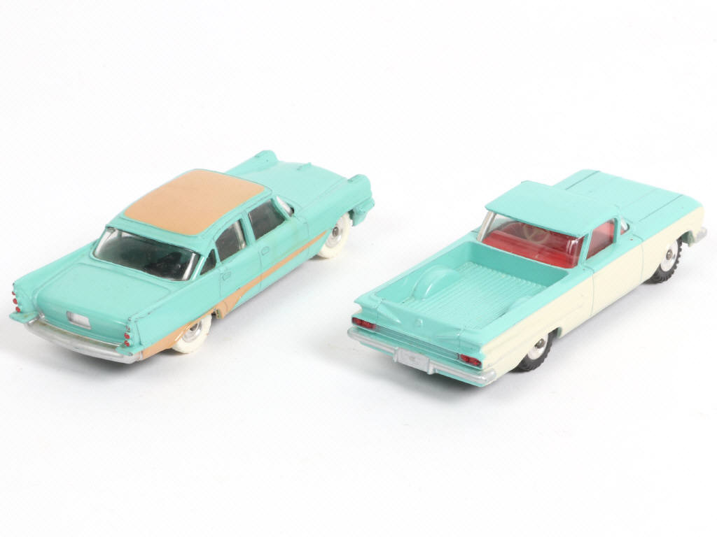comprend : DESOTO FIREFLITE (état 'A-', quelques petites traces d'oxydation sur le plancher, pneus non d'origine) & CHEVROLET EL CAMINO (état 'B', un éclat sur la portière gauche, un pneu séché)
