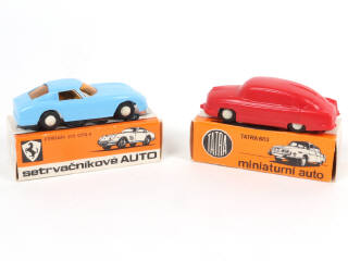 fabrications en plastique de 9 cm - on y retrouve FERRARI 275 GTB (moteur à friction fonctionne) & TATRA 603 - boîtes datées 1979 & 1980 par un tampon à l'intérieur des rabats