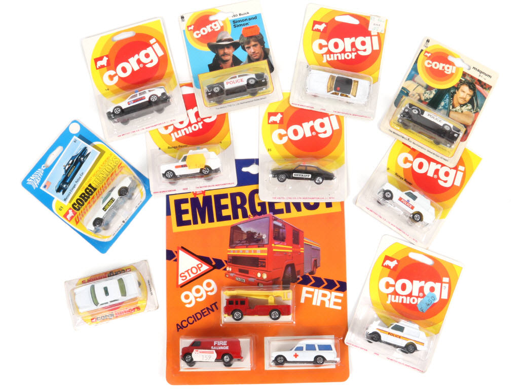 CORGI TOYS (GB) Ensemble de 10 véhicules de police, 2 de pompiers & une ambulance