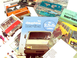 comprend : un exemplaire sur les modèles d'autocars CRUISAIR 2 & 3, un exemplaire sur les modèles d'autocars ESCAPADE, RANDONNEE & GRAND RAID, un exemplaire sur le modèle d'autocar LINAIR 2, un exemplaire sur les modèles de camions DAUPHINS, un exemplaire concernant la gamme BERLIET 79 & un autre sur l'historique de la marque avec la gamme de 1976 - on y joint un petit dépliant sur les cars VERSION LIGNE