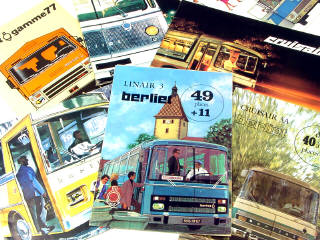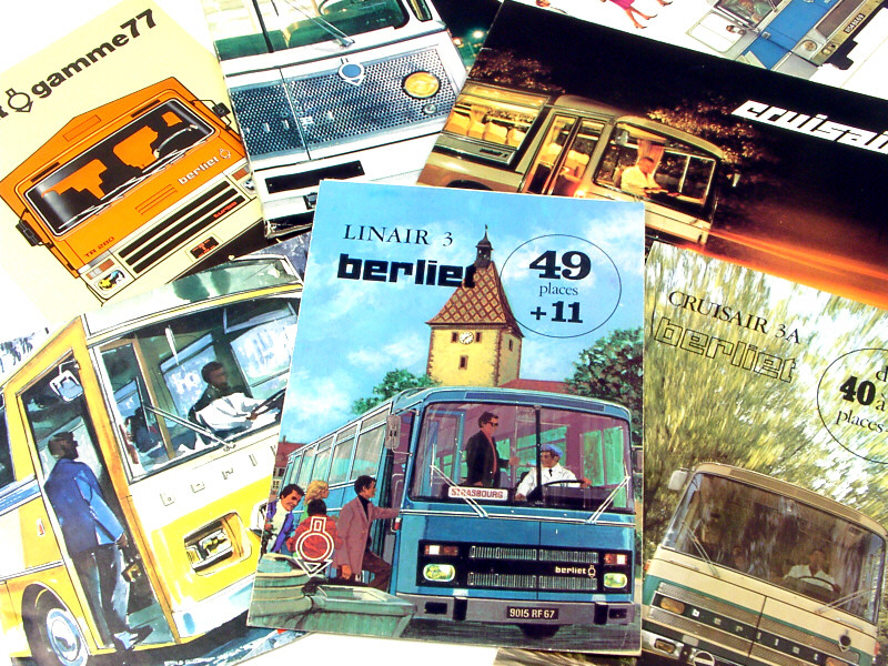 comprend : un exemplaire sur les modèles d'autocars CRUISAIR 2 & 3, un exemplaire sur les modèles d'autocars ESCAPADE, RANDONNEE & GRAND RAID, un exemplaire sur le modèle d'autocar LINAIR 3, un exemplaire sur le modèles d'autocar CRUISAIR 3A, un exemplaire concernant la gamme BERLIET 77, un exemplaire sur le modèle d'autocar PR 250 & un exemplaire sur le modèle d'autobus PCM - on y joint un petit dépliant sur le modèle d'autocar GRAND TOURISME & une petite affichette publicitaire sur les tachographes KIENZLE pour BERLIET
