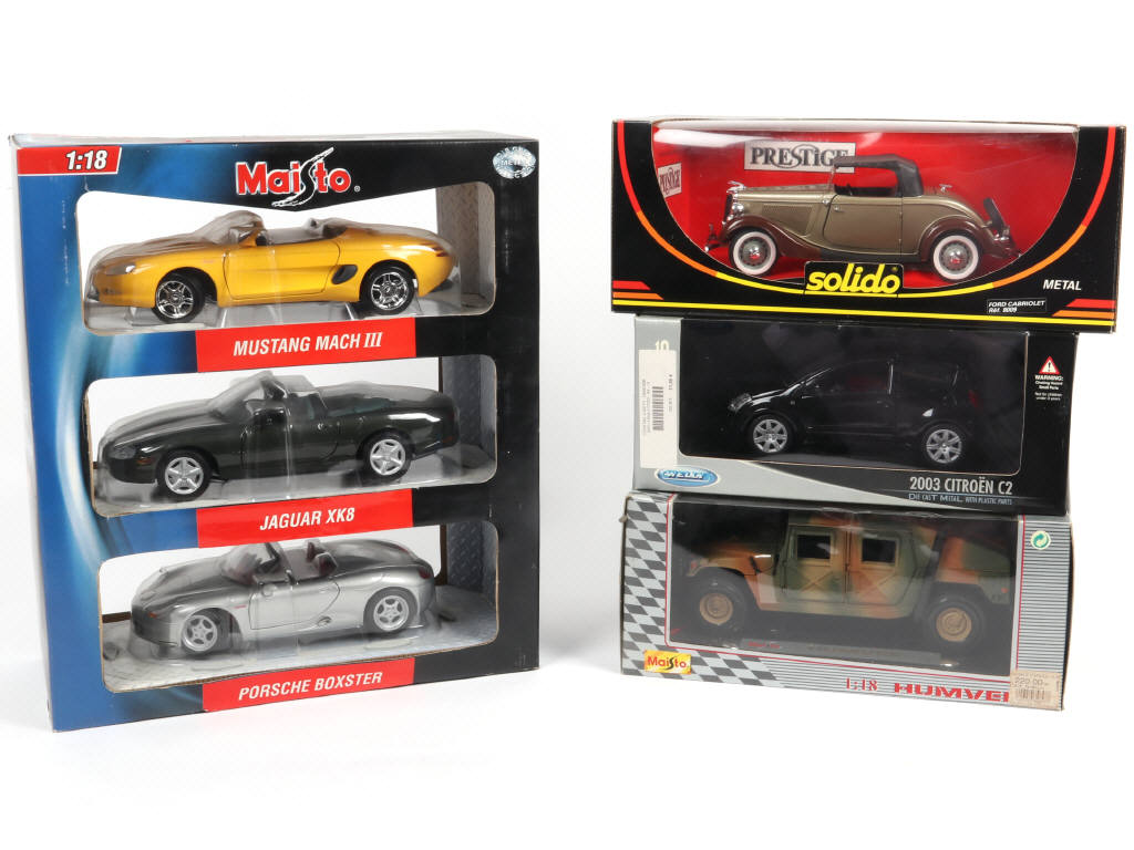 échelle 1/18ème - on y retrouve notamment les marques : SOLIDO, WELLY & MAISTO