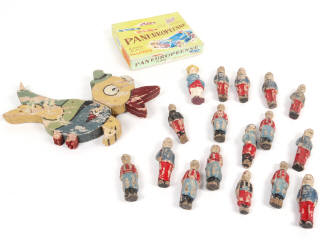 avec manques & parties cassées - on y joint un canard en bois en état 'D' & un jeu de société 'PANEUROPEENNE' (semble complet)