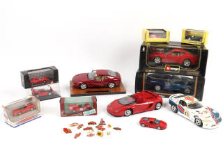 on y retrouve notamment les marques : BBURAGO, BRUMM, HERPA, MATCHBOX & VITESSE - possibilité de petits manques & parties cassées - on y joint un lot de 15 pin's FERARRI
