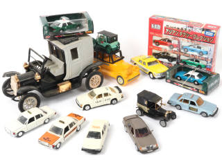 différentes échelles - on y retrouve notamment les marques : NOREV, AVON (bouteille de parfum vide) & SAFIR - 3 boîtes en états 'a' & 'b' (manque une cale) - quelques petits manques sur certains véhicules