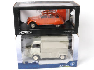 échelle 1/18ème - comprend les modèles : 2 CV 6 & TYPE H - on y retrouve les marques : SOLIDO (boîte en état 'b') & NOREV