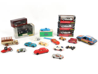 on y retrouve notamment les marques : JOUEF, MAJORETTE, SOLIDO & DINKY TOYS - avec manques & parties cassées sur certains modèles