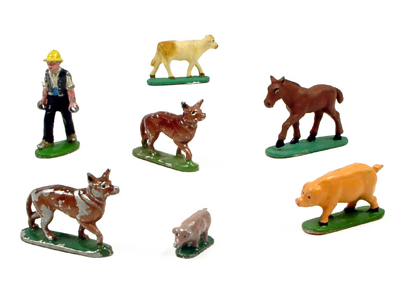 états de 'E' à 'R' - comprend : un fermier, un poulain, un porc, un porcelet, un veau & 2 chiens