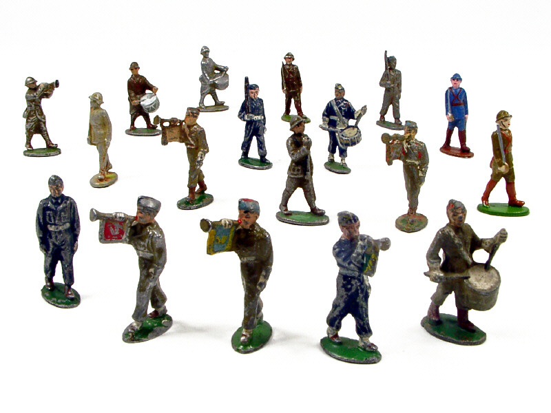 états de 'D' à 'R' - comprend : 5 clairons, 2 tambours, un soldat doigt sur la couture & 2 avec fusil à l'épaule (fusils cassés)