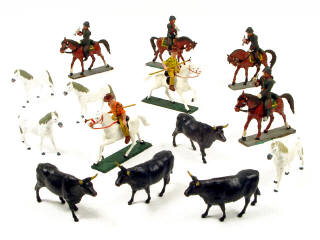 comprend : 2 gardians à cheval, 4 taureaux & 4 chevaux - une queue de cheval fendue