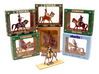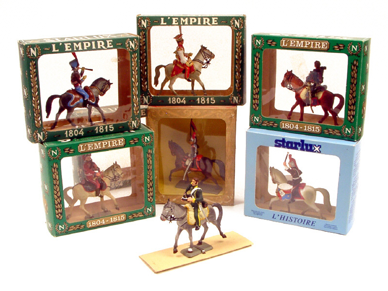 STARLUX (FRANCE) Ensemble de 5 soldats de l'époque napoléonienne & 2 gardes républicains à cheval