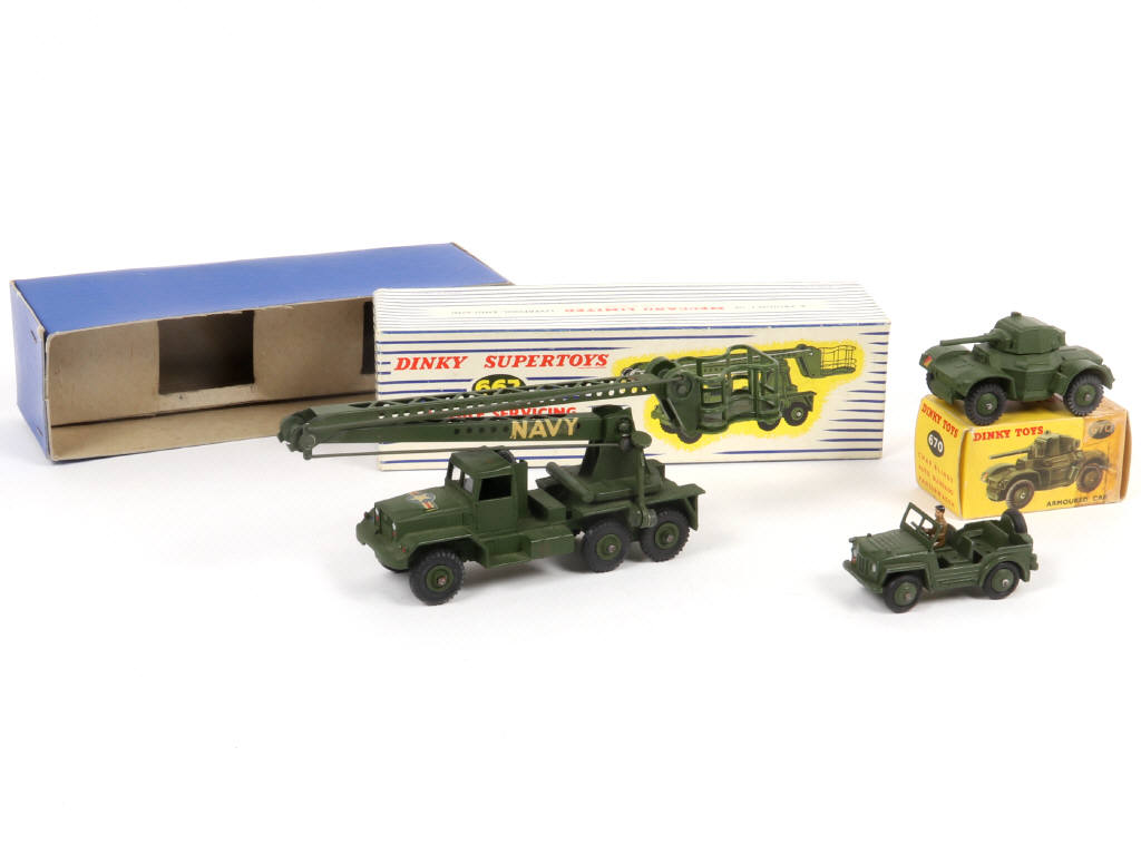 une cale de boîte présente - décalques & détails de peinture ajoutés - on y joint 2 véhicules militaires en état 'A & B' dont une boîte en état 'c' (avec traces de rubans adhésifs)