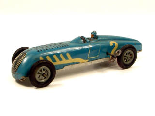 longueur 31 cm - moteur à ressort (fonctionne) - fabrication de 1956-58 avec détails au pochoir - un enfoncement sur l'avant du véhicule