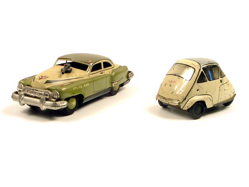 longueur 17,5 cm - moteur à friction (fonctionne) - avec bruiteur - avec mitrailleuse mobile entraînée par le moteur sur le capot - chromes légèrement ternis
