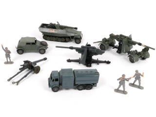 DINKY TOYS (GB) Ensemble de différents véhicules militaires,canons & soldats kaki