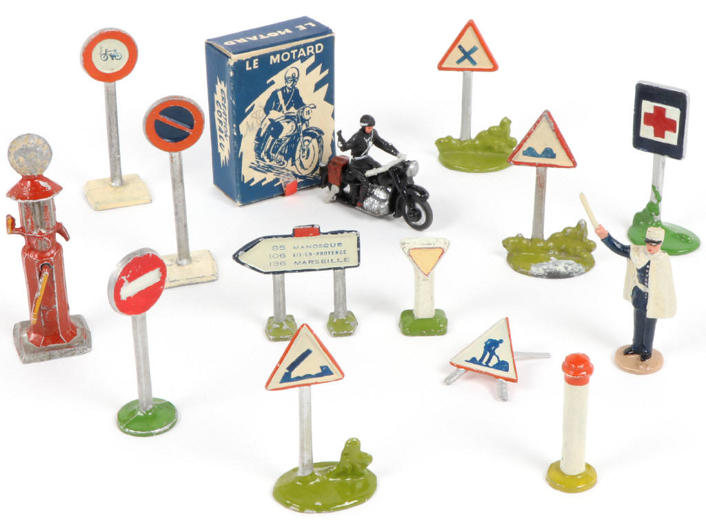 DIVERS (FRANCE) Ensemble de 12 accessoires routiers, 2 figurines & une moto