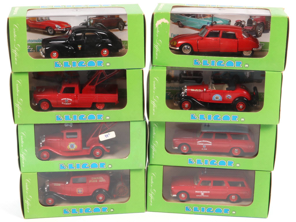 ELIGOR (FRANCE) Ensemble de 8 véhicules de pompiers