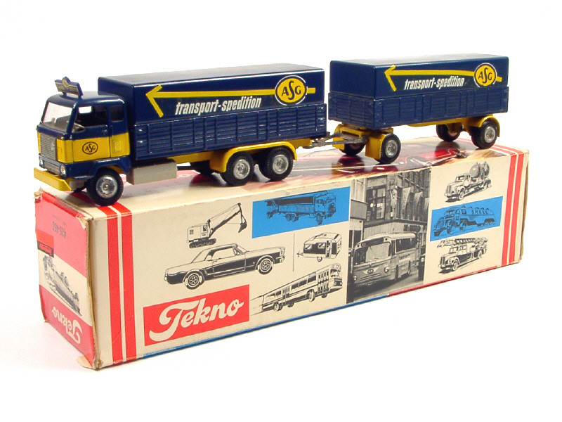 TEKNO (DANEMARK) 425-452 VOLVO FB88 Bâché avec remorque 'ASG TRANSPORT SPEDITION' bleu marine & jaune