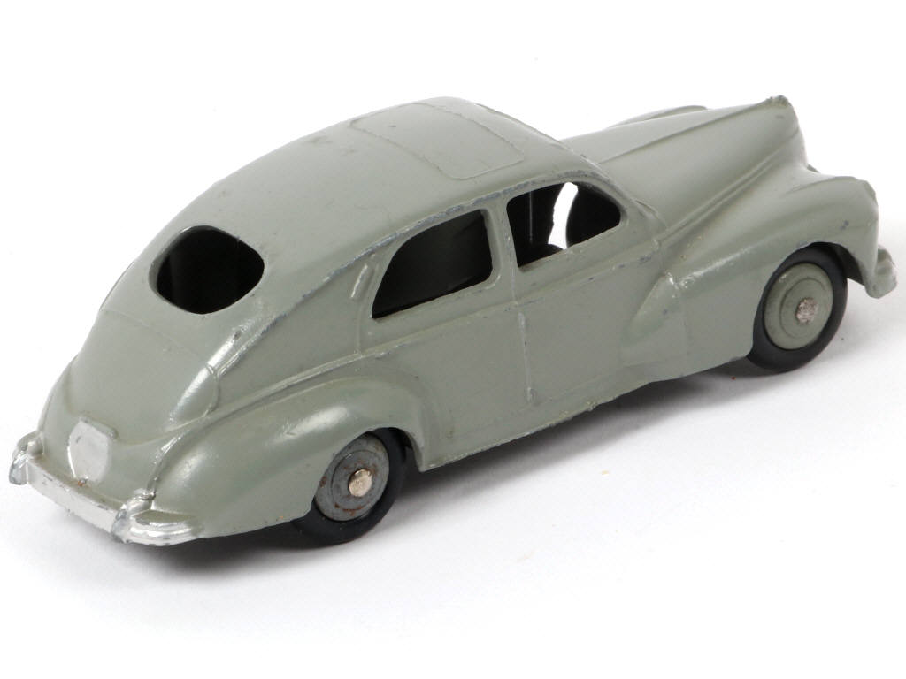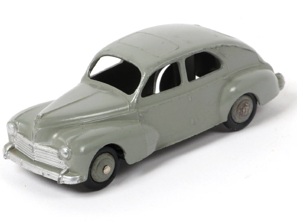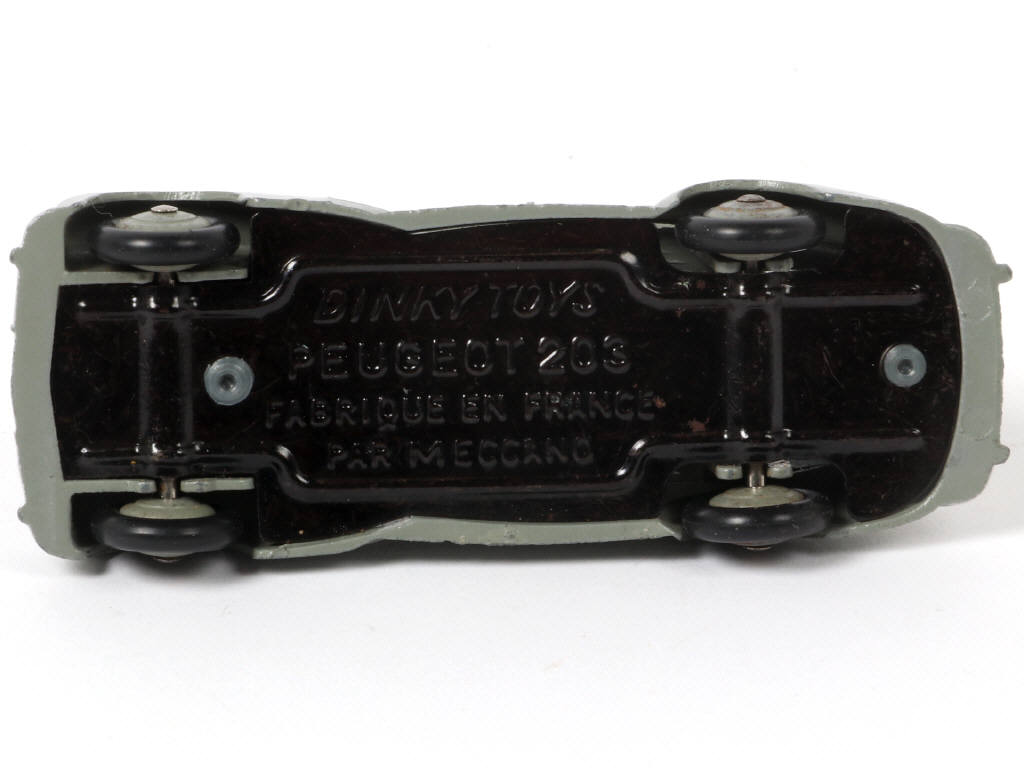 DINKY TOYS (FRANCE) 24R PEUGEOT 203 Petite lunette arrière (version avec intérieur de toit quadrillé & ailes lisses) gris moyen, jantes identiques