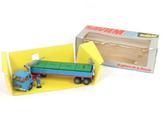 SOLIDO (FRANCE) 316 SAVIEM SM 300 Semi-remorque plateau à ridelles basses bleu, rouge & vert