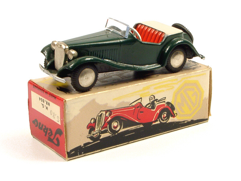 TEKNO (DANEMARK) 804 MG MIDGET TD 1952 vert anglais, intérieur rouge, capote gris clair
