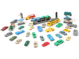 réalisations en plastique - petites échelles - on y retrouve notamment les marques : EKO, CADUM PAX & WIKING - possibilité de petits manques & parties cassées (en grande majorité sans dommage) - un exemplaire avec la mention 'COLLONIL' sur le toit
