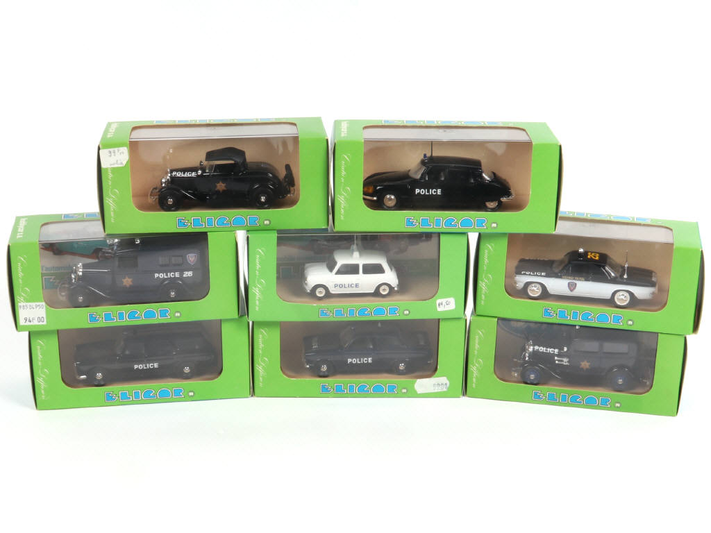 ELIGOR (FRANCE) Ensemble de 8 voitures de police