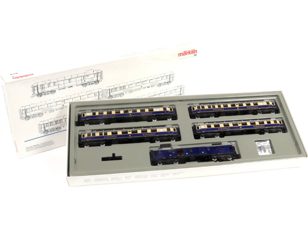 MÄRKLIN 'HO' (ALLEMAGNE) 4228 Coffret ferroviaire 'RHEINGOLD' bleu foncé, crème & gris métal