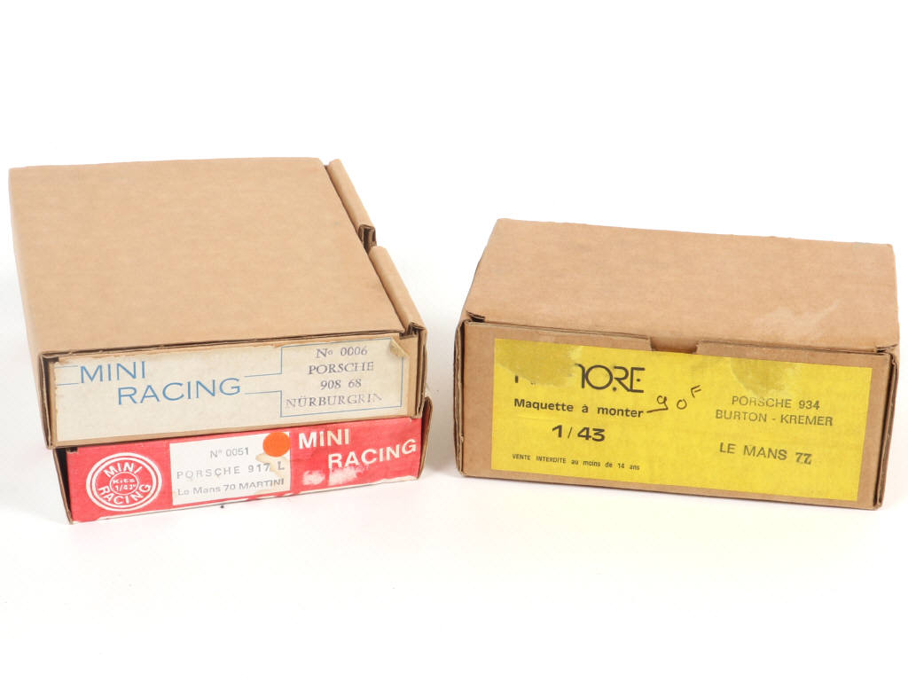 kits non montés en white metal (semblent complets) - on y retrouve notamment la marque MINI RACING